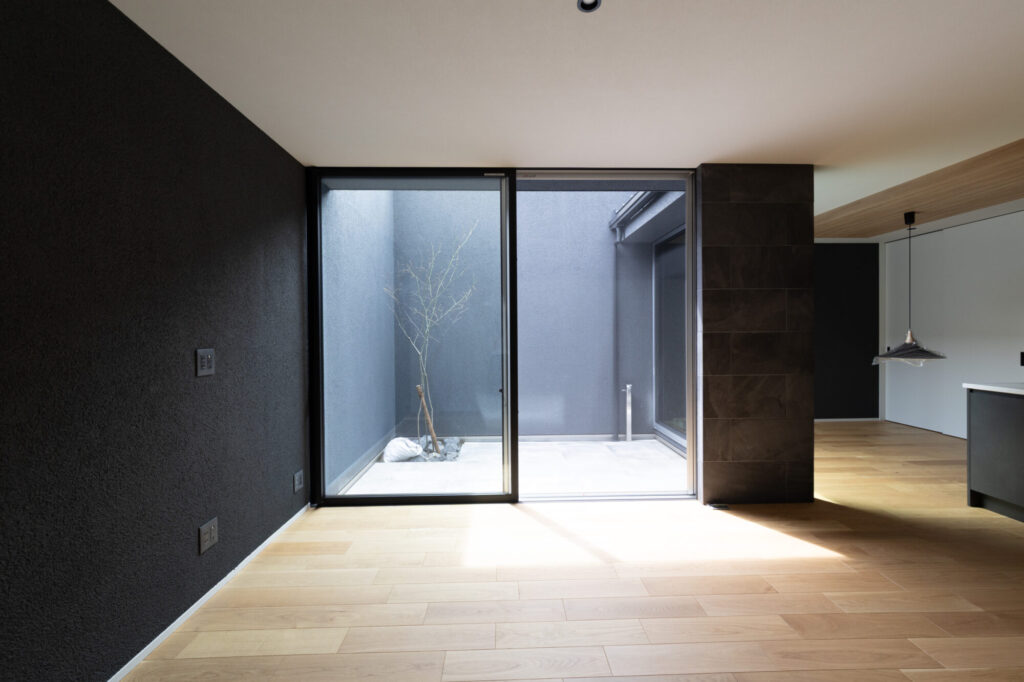 ◆A棟◆6帖の中庭と20帖リビングで解放感◎ シックモダンデザインのおうち